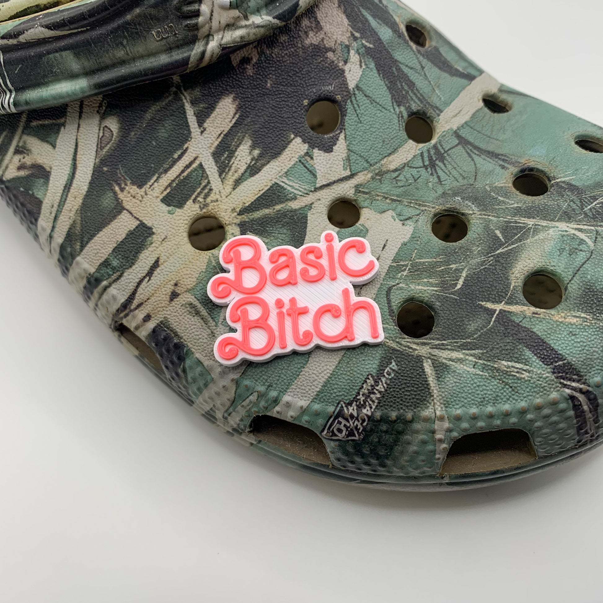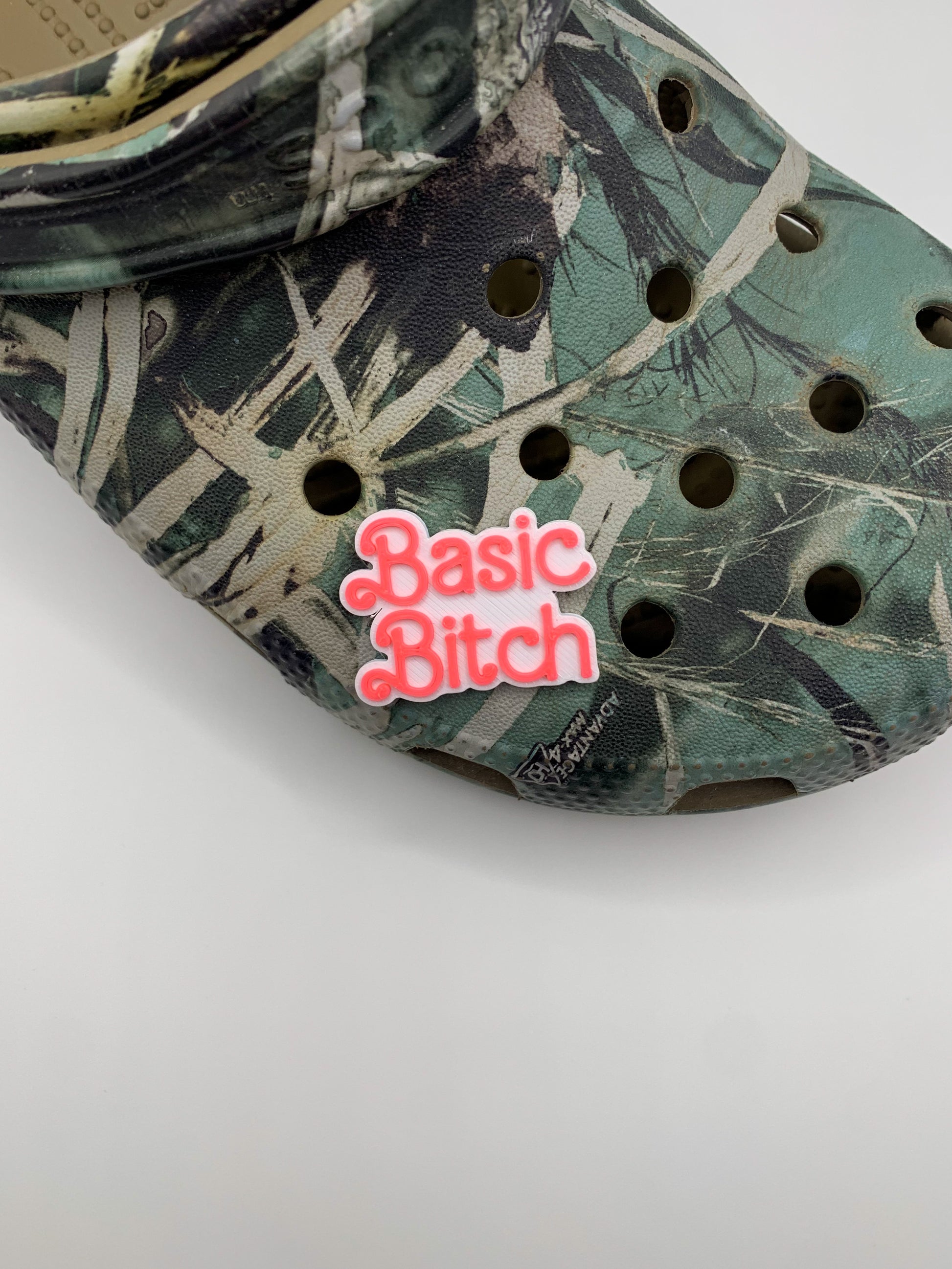 Show off your inner Basic Bitch pride with this adorable pink and white charm, designed just for your Crocs! Whether you're sipping on your pumpkin spice latte, snapping mirror selfies, or binge-watching reality TV, this charm is the perfect way to express your basic side. Made to order with love, each charm is 3D printed using eco-friendly PLA 🌍, so you can be stylish and sustainable at the same time.